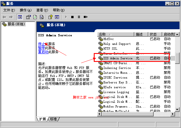 修改完成后再按照第一步的操作将“IIS Admin Service”服务开启。