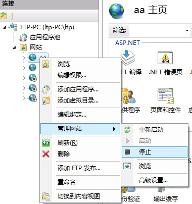 (如果是删除了那几个网站再从头开始的,请跳到下面的“”)否则请点击”是“,然后右击其它网站,点击“管理网站”,再击”停止“,再右击你刚才添加的网站,像前面一样,点击”管理网站“,再点”启动“: