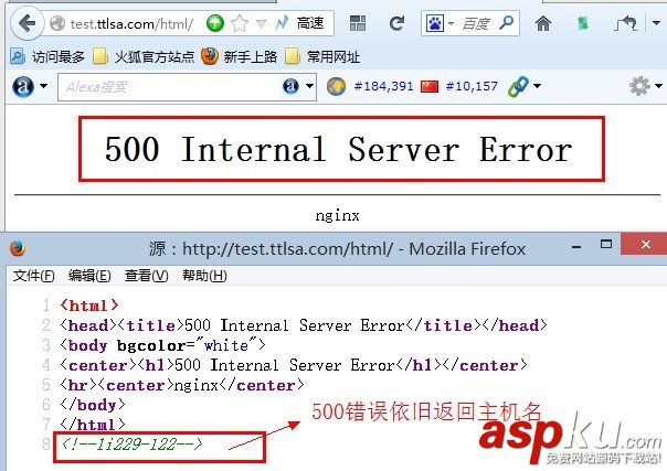 location / { return 500; footer "<!--$hostname-->";} 结果如下: