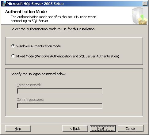 在安装的下一个画面(图i)里,系统会问你是否想要使用混合模式的windows身份验证(mixed mode authentication),这种模式让你可以使用sqlserver帐号。除非你有充足的理由不使用,否则最好使用windows身份验证模式。用户帐号的维护更简单,这是你公司潜在安全漏洞较少的一个地方。如果你需要使用混合模式,就要向安装程序提供你希望系统管理员(sa)帐号使用的密码。