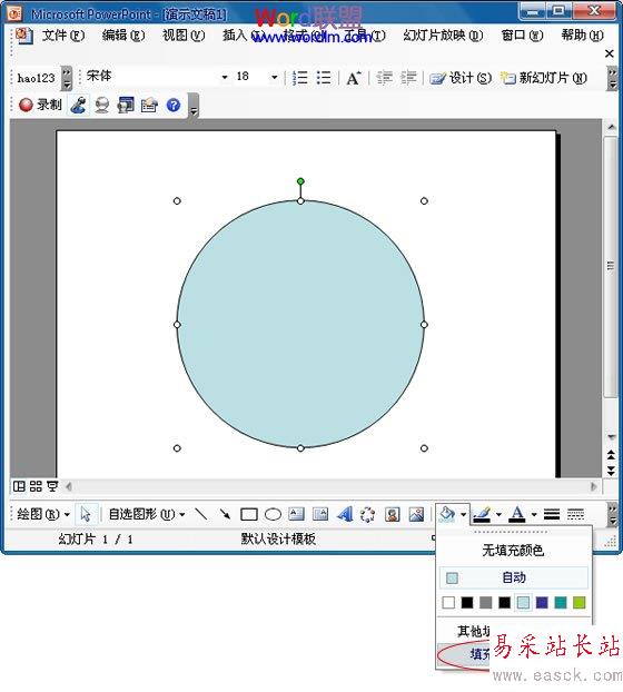 ①首先,在绘图工具的“自选图形”中选择一个自己喜欢的图形,然后PowerPoint中拉图形的效果;