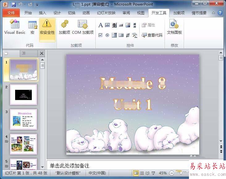 8、重新打开带有控件的PPT文件,再也不提示控件出错信息了。