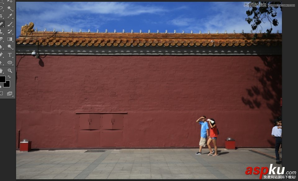 处理完后,看到很多瓦片和光阴不自然,这是就再用仿制图章慢慢替换掉不自然的地方。使用方法和修复画笔一模一样。好了,处理完后就是这样。我觉得这两个工具最适合去电线神马的了……哈哈