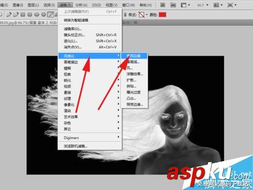 在图层面板中选择背景副本图层右键单击选择下拉菜单中的复制图层命令,得到一个新的图层背景副本2图层,执行滤镜-风格化-查找边缘命令。
