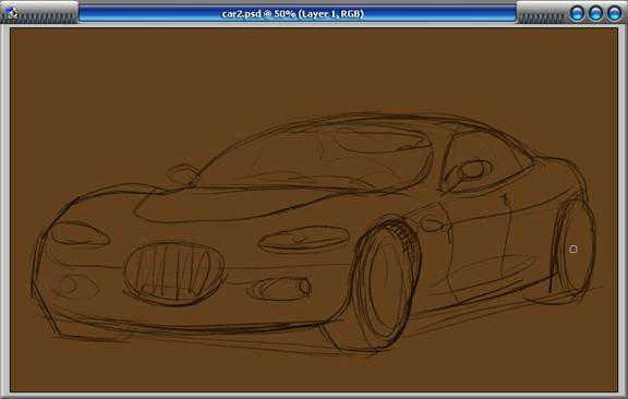 2. 用一种暖棕黄色填充背景层,新建图层,绘制出大致的轮廓比例关系。