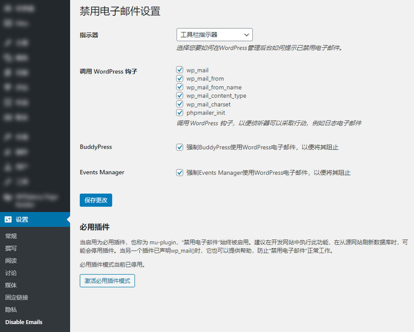 以上就是WordPress使用Disable Emails插件禁用邮件发送功能的全部内容,希望对大家的学习和解决疑问有所帮助,也希望大家多多支持武林网。新闻热点