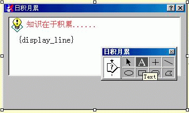 2.双击“日积月累”交互图标,输入(file/import)刚才做的图片picture.jpg,点击文字工具,在图片上欲显示文字的区域单击,输入{display_line},设置好颜色、字体等。(图三)