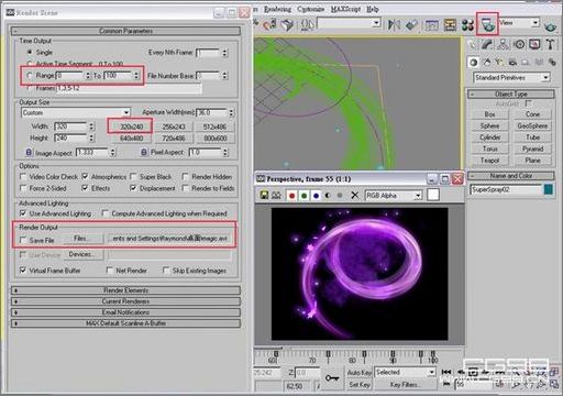 1.把 super spray02 移到约略处,在 frame 1 处手动打上关键桢,key filters 设定如图。