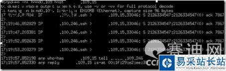 在SerB上抓从123.37.109.15过来的ssh数据包:
