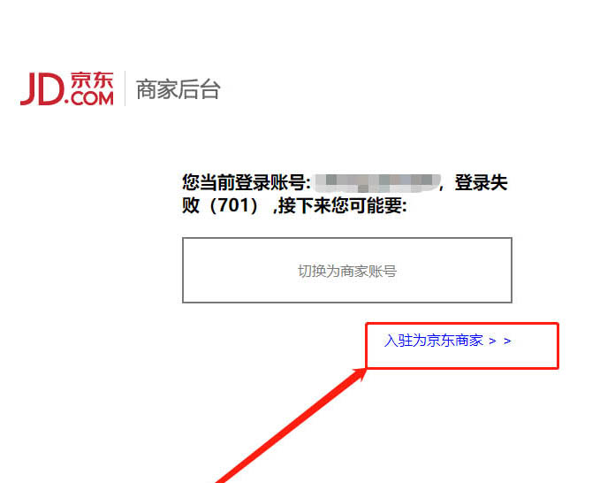 5、会提醒说需要商家账号登录,点击下面的“入驻为京东商家”