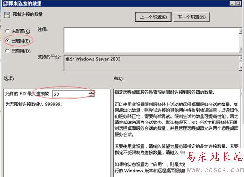 3、运行,gpedit.msc命令。计算机配置--管理模版--Windows组件--远程桌面服务--远程桌面回话主机--连接--限制连接的数量
