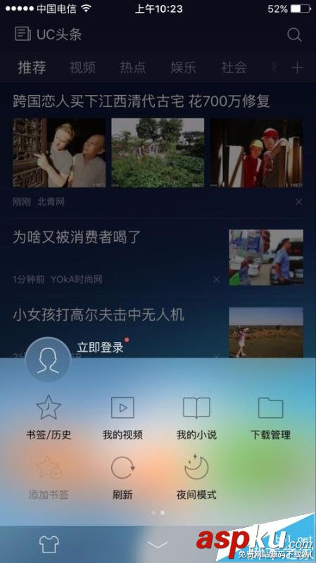 苹果手机UC浏览器可以通过以下几个步骤进入到智能小说模式。