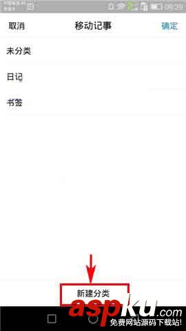 3)在没有相对应的分类时,点击界面下方的【新建分类】,随后输入相关的分类名称,点击右上角处的【完成】即可自定义分类,并可将相应的记事内容移动到该分类了~(如下图)
