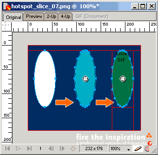 | 使用热区和切割(hotspots and slices)(下) /接下来,我们来讲切割。前面已经说过,设计师为了加快页面加载的速度把大图片分割成小图片放在表格中,这在以前是一件费时又费力的事,现在使用了切割fireworks会按照你的切割自动生成html的表格代码,你只需要将生成的代码放在页面的相应位置就可以了。 可能有的朋友要问,难道图片切割之后下载速度就加快了吗?对,如果合理的切割的话,确实可以减小下载量,因为将同样颜色的大色块切割成一个单独的文件并使用较少的颜色输出就会得到尺寸较小的文件。另一个切割图片的理由是可以减少浏览者的心理等待时间。当你等待一副大图片出来时会觉得速度很慢,因为这时你什么也不能做,但是当图片切割后,小图片很快就能出来并且一张接着一张,在下载的过程中浏览者就能够先看到图片的一部分,因此他不会有等待的感觉,这就是为什么我们要使用切割的道理。其实道理和之后使用在网络多媒体播放中的流式技术是异曲同工的,虽然可能这个比较不是很恰当。 除了用来分割图片,在fireworks中翻转图、按钮、导航条等带有交互动作的对象都是基于切割的。 创建切割非常容易,只要使用切割工具如同画矩形一样就可以创建出需要的切割,使用多边形切割工具(polygon slice tool)更可以创建出任意形状的切割,如图: ![]() 图上绿色的区域就是切割的区域(fireworks默认使用绿色表示切割,蓝色表示热区,当然你可以通过修改设置来改变他们的颜色,但是我不建议你们这样做),红色的线条是图片输出后生成的表格的线条,这些红色的线条组成的一个个矩形就对应了表格的每个单元格。 你可能注意到了,当使用不规则形状做切割时,fireworks会沿着这个多边形的最边缘建立一个矩形,这是因为表格和图片只接受矩形这种形状,输出后的结果将会被处理成在一张矩形的图片上有一个多边形的热区这种形式。 说了这么多,我们来动手做一下,我们的目标是要创建一个圆形的切割,虽然没有圆形的切割工具,但是我们可以把一个圆形的热区转换成切割(这也是创建精确切割图形的方法)。先用圆形工具(ellipse tool)在画板上画一个圆,然后选择insert->hotspot创建一个和圆形一样形状的热区,最后选择insert->slice把热区转换为切割。如果中间没有经过热区这一步,而直接选择insert->slice,那么fireworks将创建一个矩形的切割。 ![]() 选中这个切割,打开object面版(window->object),可以看到和切割相关的属性:链接的url地址,alt的文字,打开链接的方式(target)这些都和热区一样,auto-name slices是用来设置是否自动为切割的图片命名。 ![]() 在type菜单里可以看到2项:image和text。选择image切割就会被输出成图片保存;选择text后,可以在object面版中输入文本格式的文字,输出后这部分切割会留出空白的单元格用文本填写。这个功能对于需要经常更改消息的页面相当方便,这样就不用每次都创建图片。 ![]() 在最后输出之前,选择file->html setup来到document specific这项可以设置fireworks自动命名文件名的规律,一般没有特殊要求就使用默认设置吧。 ![]() 然后就可以输出html代码了,选择file->export完成最后的工作。最后我要说的是,在输出时选择include areas without slices的话,那么画板上没有切割的部分也将被输出成等同大小的图片,如果不选择此项,那么fireworks只会把有切割的部分生成图片,没有切割的部分用一张1x1的透明gif图片(pacer.gif)撑开,使得表格在不同的浏览器中看起来一样。我的建议是使用spacer.gif撑开表格,至于道理嘛,我想我不说你也应该明白。 |