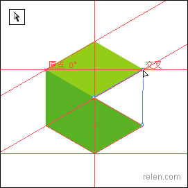 最后挪动第三个菱形的上、左两点,利用参考线挪动到指等定位置。更改第三个菱形的颜色。六面体就制作完成了。我们可以转换到轮廓模式上观察这些点是否交叉密合,更进一步做到精确图形。