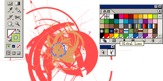 8、也可以用群组选择工具选中原来的小圆并改变其边线色,将会得到不同的效果。