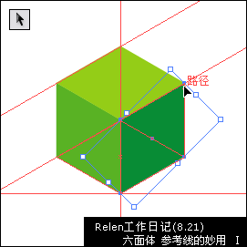 想要生成如卷首的六面体组合,依旧是利用设置的参考线,以及智能参考线。怎样?看过之后,你可以把他们直接导入flash或photoshop里,加工完善,感觉不错吧:)