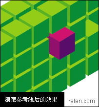4, 重新选中阵列中你打算改变颜色的六面体(图一),选择菜单:视图>参考线>制作参考线 或者使用快捷键 【 ctrl + 5 】,这时被选中的六面体消失了,变成了参考线。