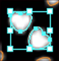 8. 整幅图案的大部分结构是由三个小桃心的图案组成,依上述方法复制出多个图案,当鼠标指针变为旋转指针时,旋转图形,放在素材图中相应的位置上,将三个桃心一组的图案全部绘画完成。