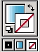 现在用在渐变色调色板(gradient)上调出起点蓝色终点白色的渐变色。选中被分割开的下半部分的图形,然后用调好的渐变色填充它。上半部用百色填充。最后将文字图形的线条颜色去掉。
