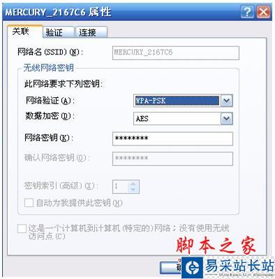 4)选择您的无线网络名称,点击“属性”,在无线网络密钥中核对网络验证是否与路由器中加密方式一致。如果不一致,请先修改验证方式,再重新输入正确的网络密钥。
