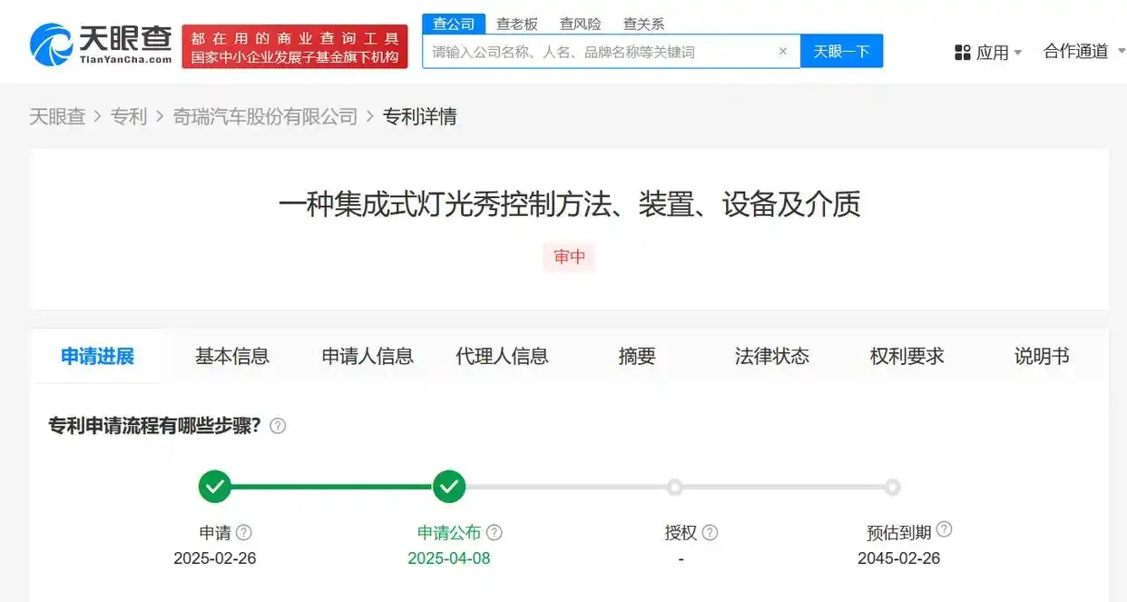 奇瑞汽车公布集成式灯光秀专利 可