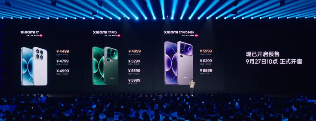 小米17系列起售价4499元 9月27日10