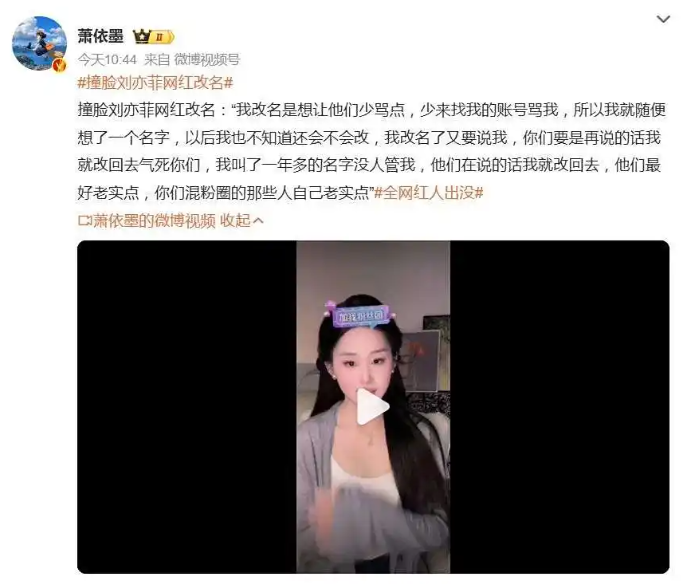 撞脸刘亦菲网红“刘一菲”改名:想让