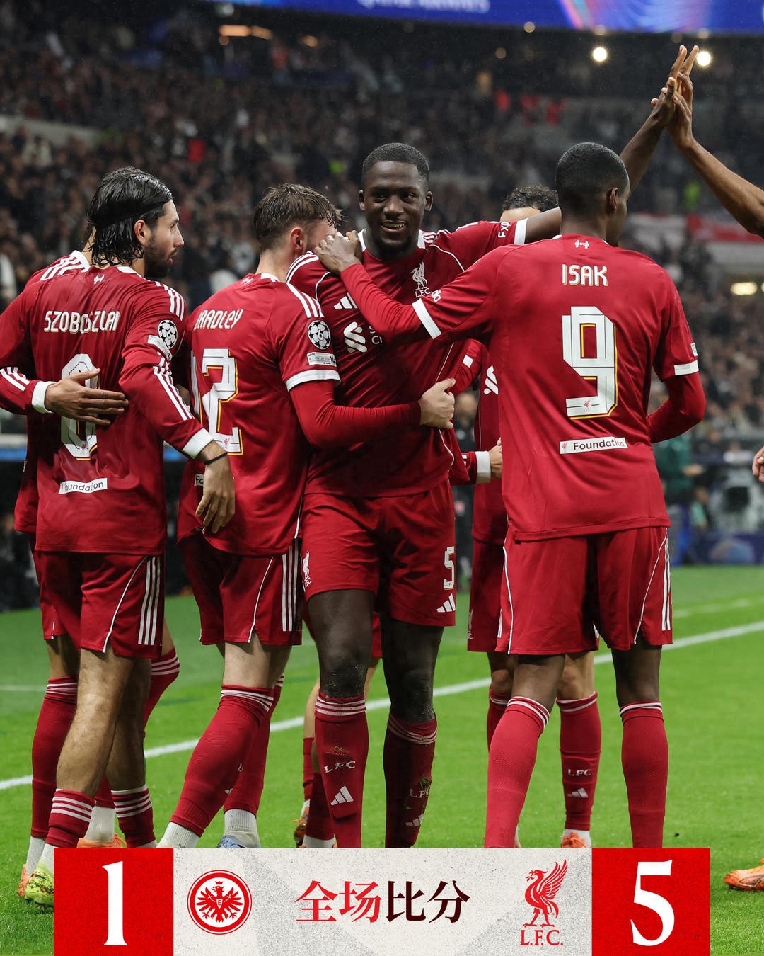欧冠联赛:利物浦5-1逆转法兰克福 结