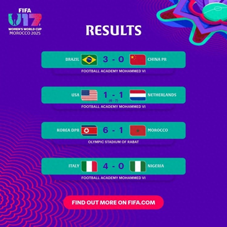 U17女足世界杯1/8决赛赛果