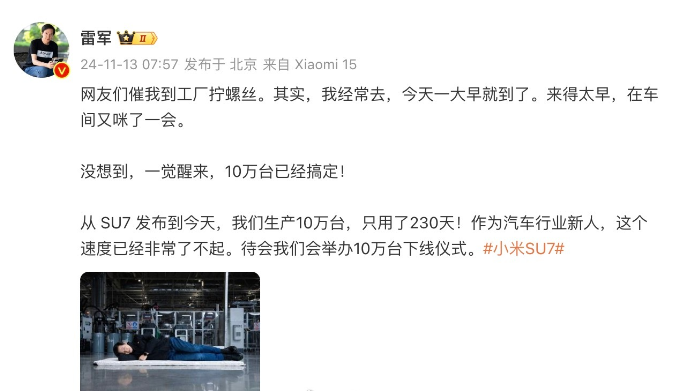 传小米汽车第50万台整车预计月底下